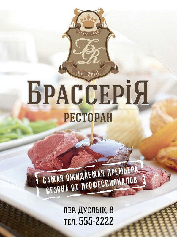 Ресторан «Брассерия» - двухуровневый ресторанный комплекс, включающий в себя 3 банкетных зала, караоке зал, премиум ресторан, пивной ресторан, концертную площадку, танцпол, конференц-зал и бесплатную парковку.